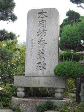 秀策の碑。 お参りすれば半目強くなる…らしい? |