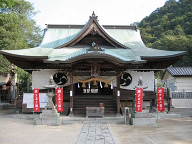 上の石碑と同じく、神社内ではなく海に向かって 建っています。 |