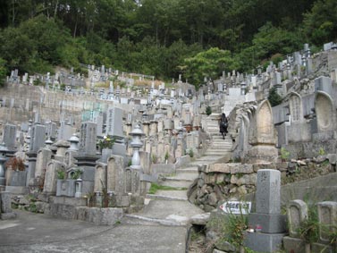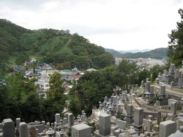 秀策のお墓のある墓地。 山の中腹といった感じのところにあります。 |