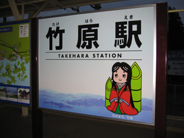 1日目。 尾道には新幹線は止まらないので、のぞみで福山を経由して尾道へ。 福山で山陽本線に乗り換えて20分ほどで尾道到着。 駅を出てから建物を振り返り、あまりに忠実な原作の作画に感動。 (コミックス15巻P101のままでしたよ!) ただ駅の建物を見ているだけなのに2人で大騒ぎ(苦笑) 私はハンディカムを持っていたんですが、2人共声が上ずってました(苦笑) 駅前は結構広いです。ひとしきり撮影を終え、チェックインまで少し時間があったのでまずは『暖談』へ。 尾道駅を出て左手(福山方面)へ少し歩いた所にある踏切を渡ると目の前にあります。 夕飯を『暖談』で食べる予定だったのでとりあえず外観の撮影を…。 バシャバシャと撮影をするも、周りには特に何もない場所なので、ものすごく変な人達に思われただろうなぁ・・(汗) こちらももちろん、コミックスのP116の外観と酷似。 他の方のレポを見ると、味もかなり美味しいとのことだったので、期待を胸に次は周平さんのいた碁会所へ。 踏み切りの手前から。こちらは『暖談』の近くにある商店街をずっと行った先にあります。 この商店街、かなり長くてビックリ。 入ってすぐ辺りに和服の「いちかわ」美術刀剣の「清春」を発見。 そんな事だけでもテンションが上がる2人。 そしてしばらくその商店街を歩いていると、流れていたBGMが突然聞き覚えのあるものに…。 なんとTVアニメ第2代ED曲である『ヒトミノチカラ』が流れてきたのです! 先に執筆人が気づき、(それこそ超イントロクイズ並みの速さで)2人とも大興奮。 まさに、神の存在を感じました(笑) (オタクの神様をね…) この少し手前に和服の「いちかわ」が。一気に上がったテンションのまま碁会所へ到着。 碁会所はアーケードの継ぎ目に郵便局があって、その先のアーケードを入ってすぐ右にあります。 さすがに中には入る勇気がなく、外からの看板撮影のみにとどまりましたが、 やはり看板は原作そのまま!(コミックスP121) しかしこの碁会所、『暖談』からはかなり離れていて(徒歩で5分くらい) 原作内では『慈観寺』(碁会所より更に先にある)→碁会所の前を通過→『暖談』という コースをたどったからヒカルも行けたようなものという感じ。 河合さんもよくあそこまで歩いたなぁ(笑) 一見素通りしてしまいそうなのでお気お付けを。ここで一旦ホテルにチェックインをしてから、竹原にある『宝泉寺』へ。 『宝泉寺』は尾道から三原乗換えで、呉線の竹原駅からタクシーに乗りました。 呉線が1時間に1〜2本程度しか走ってないので、行かれる方は要注意。 (この呉線、フツーの電車なのに何故か使われていない整理券発券機がついていて、 駅に止まる度に「整理券をお取りください」とアナウンスが流れるんですが一体…(苦笑)) 竹原からはけっこう距離があって(徒歩だと40〜50分程度)、車で行っていない人は タクシーに乗るのがベストです。 運転手さんも宝泉寺はご存知のようで行き先を告げただけで大丈夫でした。 その名の通りかぐや姫がモチーフの看板が多数。
